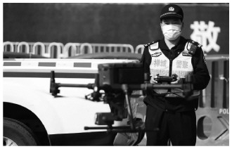▲ 广东省佛山市公安局禅城分局民警使用无人机进行空中巡逻。