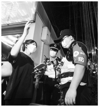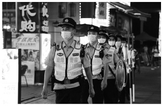 广东省佛山市公安局南海分局桂城派出所社区民警在夜市巡逻。