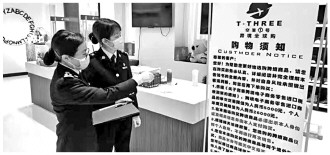 图为成都海关关员在“前店后仓+快速配送”跨境电商新零售体验店内开展保税核查。 景博雅 摄