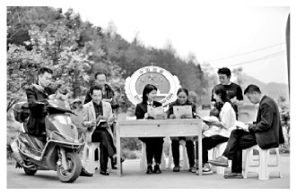 4月11日,贵州省黔西市人民检察院检察官走进该市协和镇果坝村,开展村头法治小课堂活动,为村民宣讲禁毒、反诈、交通安全、未成年人保护等知识,引导村民加强法治意识。图为检察官向村民宣讲法律知识。