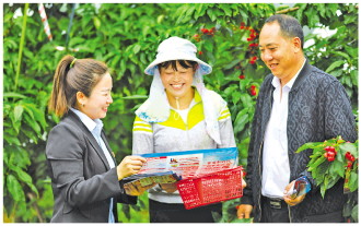 连日来,贵州省黔西市司法局钟山司法所工作人员以“民法典宣传月”为契机,将普法课堂搬进果园,结合典型案例,向游客和果农讲解反诈、禁毒、民法典等知识,为乡村振兴注入法治力量。图为5月19日,钟山司法所工作人员在长顺村向村民讲解民法典知识。