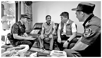 图② 南苑街道综合治理联动队员、社区工作人员走访办案,化解矛盾纠纷。
