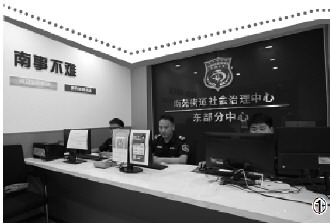图① 南苑街道社会治理中心东部分中心办案大厅工作人员现场值班。