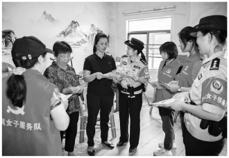 今年以来,广东省兴宁市公安局径南派出所以擦亮忠诚的本色、平安和谐的底色、爱民法治的特色“三色”为思路引领,锚定创建全国“枫桥式公安派出所”目标,积极探索构建全时空守护平安、零距离服务群众、多元化化解矛盾工作机制,全力提升派出所警务工作效能。图为径南派出所红枫女子服务队入户宣传反诈、禁毒等知识。