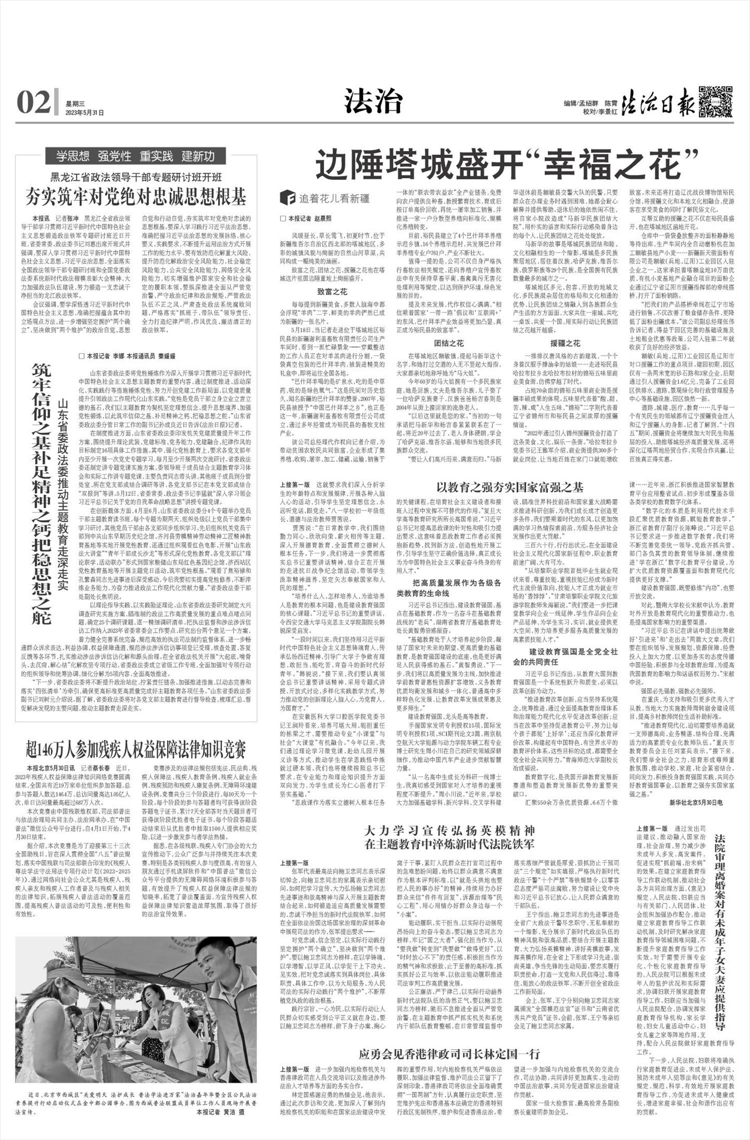 对党忠诚、信念坚定,以实际行动践行坚定拥护“两个确立”、坚决做到“两个维护”。要以鲍卫忠同志为榜样,在以学铸魂、以学增智、以学正风、以学促干上下功夫、见实效,把对党忠诚落实到具体岗位、具体职责、具体工作中,以为大局服务、为人民司法的实际行动践行“两个维护”,不断厚植党执政的政治根基。