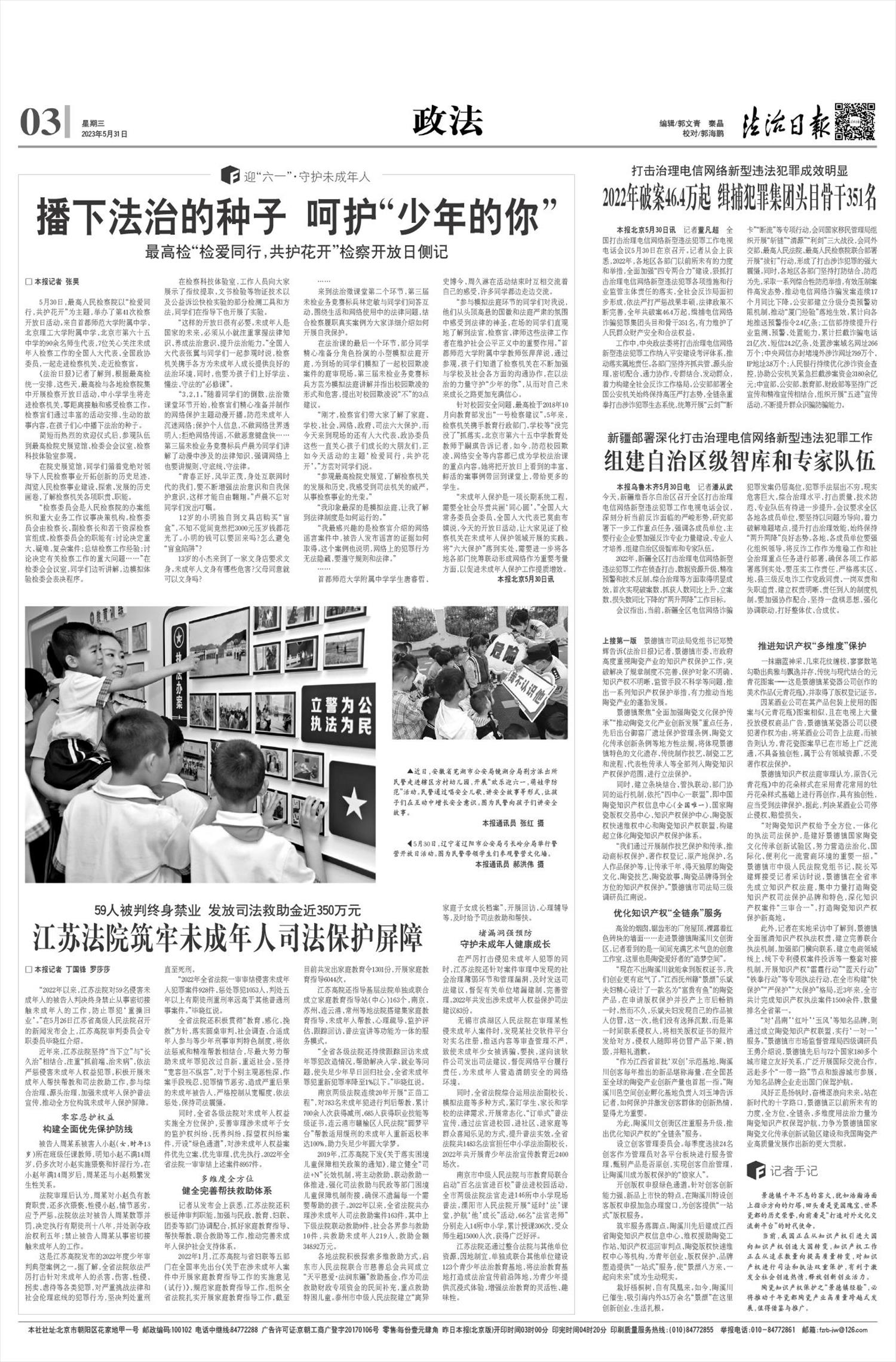 童建明指出,未成年人保护是一项系统工程,需要全社会尽责共画“同心圆”。修改后的未成年人保护法、预防未成年人犯罪法,构建了“家庭、学校、社会、网络、政府、司法”六大保护体系。检察机关将以检察履职助力“六大保护”形成合力,与各方携手“共护花开”,共同为未成年人健康成长撑起一片法治艳阳天。