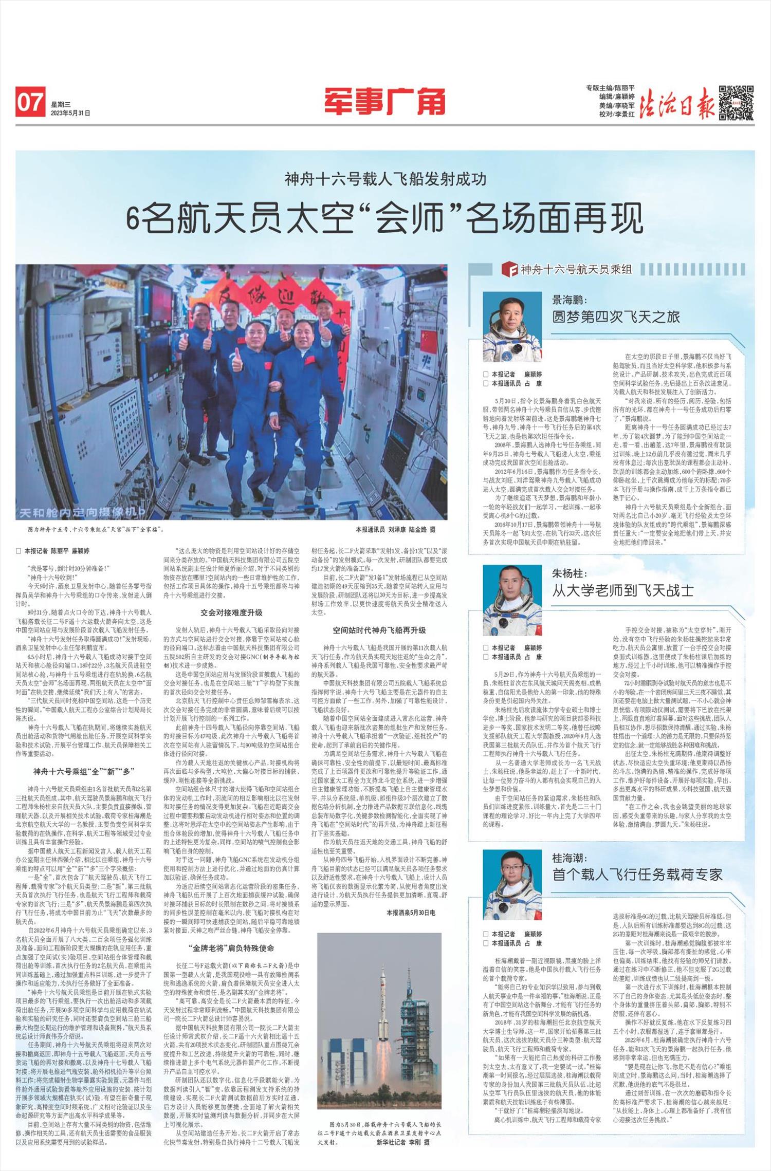 后续,两个航天员乘组将在空间站进行在轨轮换。其间,6名航天员将共同在空间站工作生活约5天时间,完成各项既定工作。