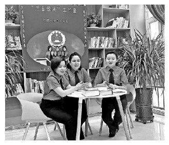 图为5月22日,三名检察官在录制普法视频。 策勒县人民检察院供图