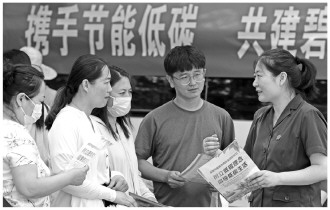 连日来,山东省枣庄市市中区人民法院、环保、工会等部门联合开展以“携手节能低碳 共建碧水蓝天”为主题的法治宣传活动。图为法官向群众宣讲环境保护法。
