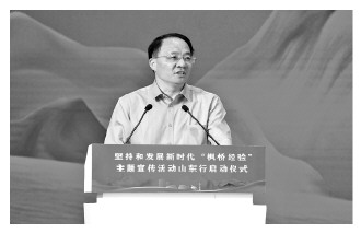 图② 德州市委副书记、市长朱开国在坚持和发展新时代“枫桥经验”主题宣传活动山东行启动仪式上致辞。