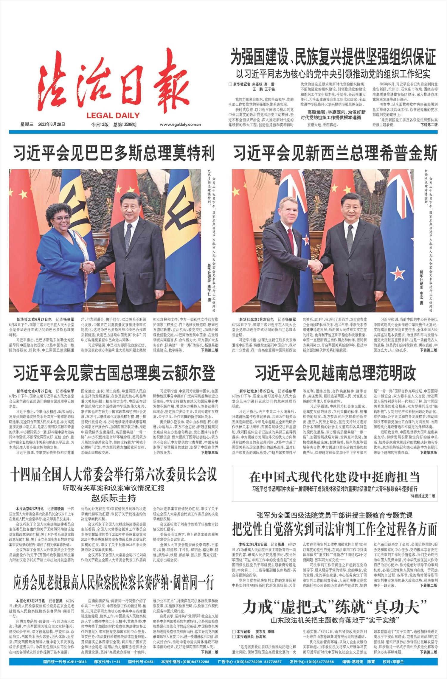 新华社北京6月27日电 记者杨依军6月27日下午,国家主席习近平在人民大会堂会见来华进行正式访问的巴巴多斯总理莫特利。