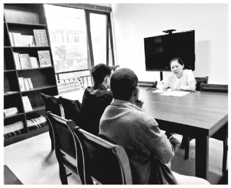 江苏省宿迁市泗阳县司法局社区矫正工作人员对未成年社区矫正对象及其监护人开展谈心谈话。 陈爽 摄