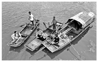 图③ 8月15日,江苏省宝应县公安局射阳湖派出所民警来到辖区射阳湖国家级水产种质资源保护区水域进行巡逻检查,与志愿者、网格员清理垃圾和湖面漂浮物,向当地群众宣讲禁捕法律法规。