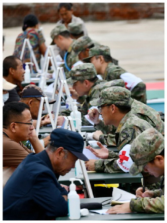▲ 图为8月12日,联勤保障部队第964医院医疗队在吉林省榆树市八号镇开展医疗服务。 本报通讯员 李游 摄
