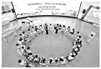 图② 8月9日,浙江省台州市路桥区人民检察院路桥检察室检察官走进人峰社区,组织青少年开展暑期法治夏令营活动。