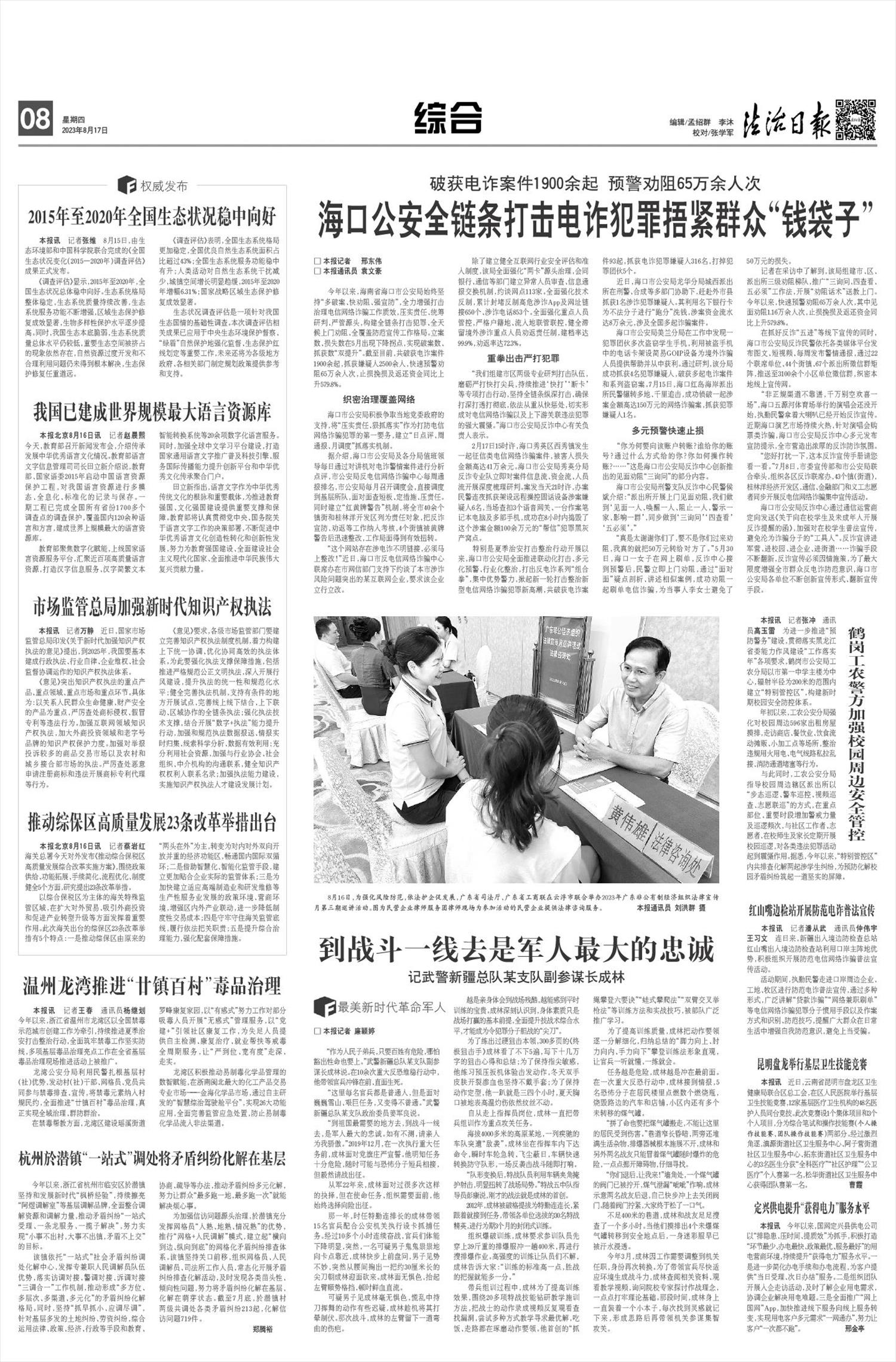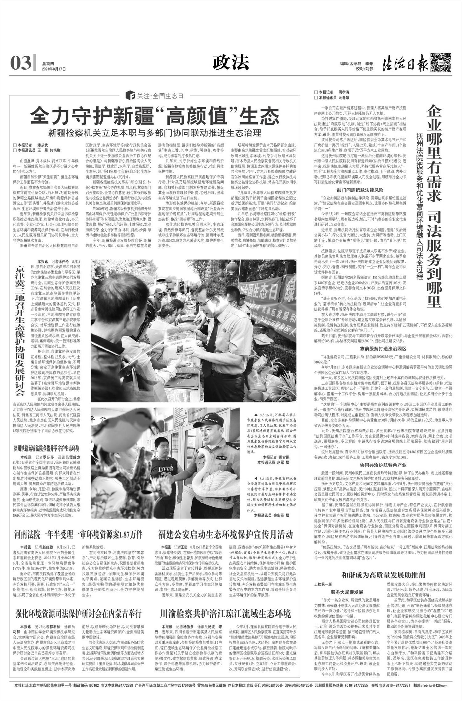 本报讯 记者张昊 8月15日,最高人民法院、最高人民检察院联合发布一批生态环境保护检察公益诉讼典型案例。本次案例的发布旨在坚持以“诉”的确认体现司法价值引领,精准规范办好生态环境保护公益诉讼案件,推进生态环境司法保护高质效发展。