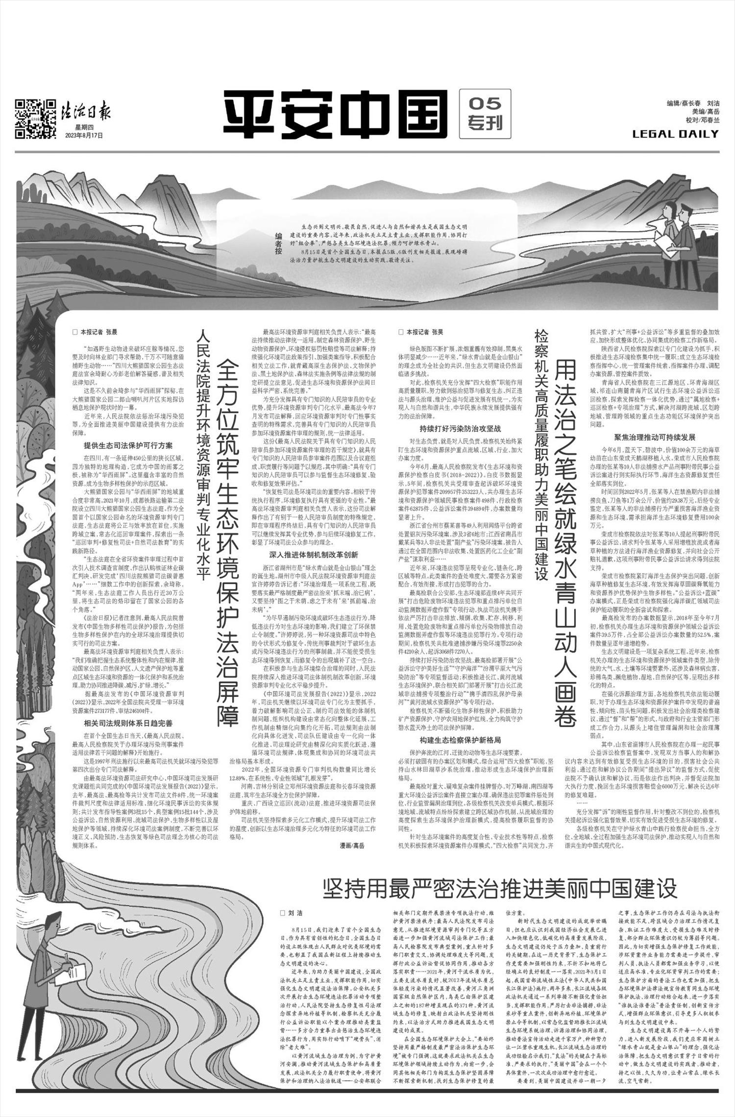 两高相关部门负责人表示,全国审判机关、检察机关以司法现代化保障生态文明建设现代化,高质效办理好每一件生态环境保护公益诉讼案件。要进一步加大司法办案力度,深化办案实践,进一步完善检察机关调查取证措施,准确把握“可诉性”的司法要求,让提起诉讼成为促进办案精准化、规范化的有效手段,通过司法裁判体现价值引领。要积极稳妥推动检察公益诉讼立法,健全审判机关、检察机关与行政机关工作协调长效机制,形成生态环境保护治理合力,以更高站位、更宽视野、更大力度在法治轨道上推进新征程生态环境保护工作高质量发展。