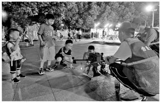 图② 双岗派出所带领义警开展无人机巡逻时为小朋友讲解安全防范知识。 宋叶 摄