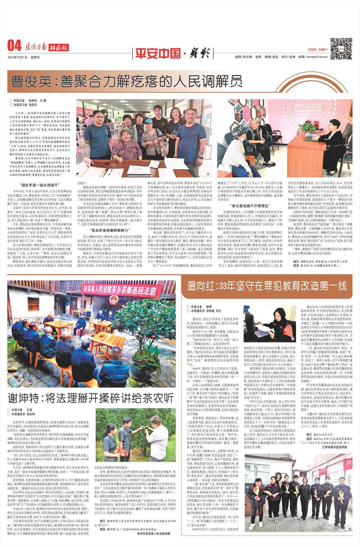 “这样的长途跋涉是家常便饭。我们有时去现场勘验,有时去开庭调解,有时去普法,为的就是要及时解决茶乡百姓遇到的法律难题。”谢坤特告诉《法治日报》记者。