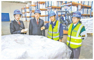 近日,江苏省连云港经济技术开发区人民检察院检察官来到连云港亚欧“一带一路”供应链基地企业,主动靠前提供法律支持,切实服务“一带一路”强支点建设。图为检察官向企业员工讲解涉外法律知识。 本报通讯员 王健民 徐千晴 摄