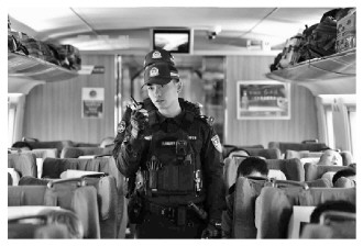1月20日,西安铁路公安局西安公安处特警正在进行列车巡查。 张鑫 摄