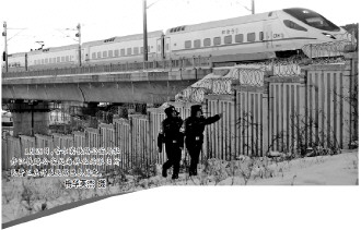 春运第一天,为了群众的旅途平安,还有很多铁路民警奋战在乡村小站、大山深处、戈壁高原,守护着“大动脉”的畅通。1月26日9时,在长图铁路线上,沈阳铁路公安局吉林铁路公安处哈达湾站派出所双吉警务区民警王雪峰踏雪排查隐患,呼呼的寒风,冰冷刺骨。“这是我的责任田,我必须守好守牢。”王雪峰的话和周围的山一样坚实、厚重。