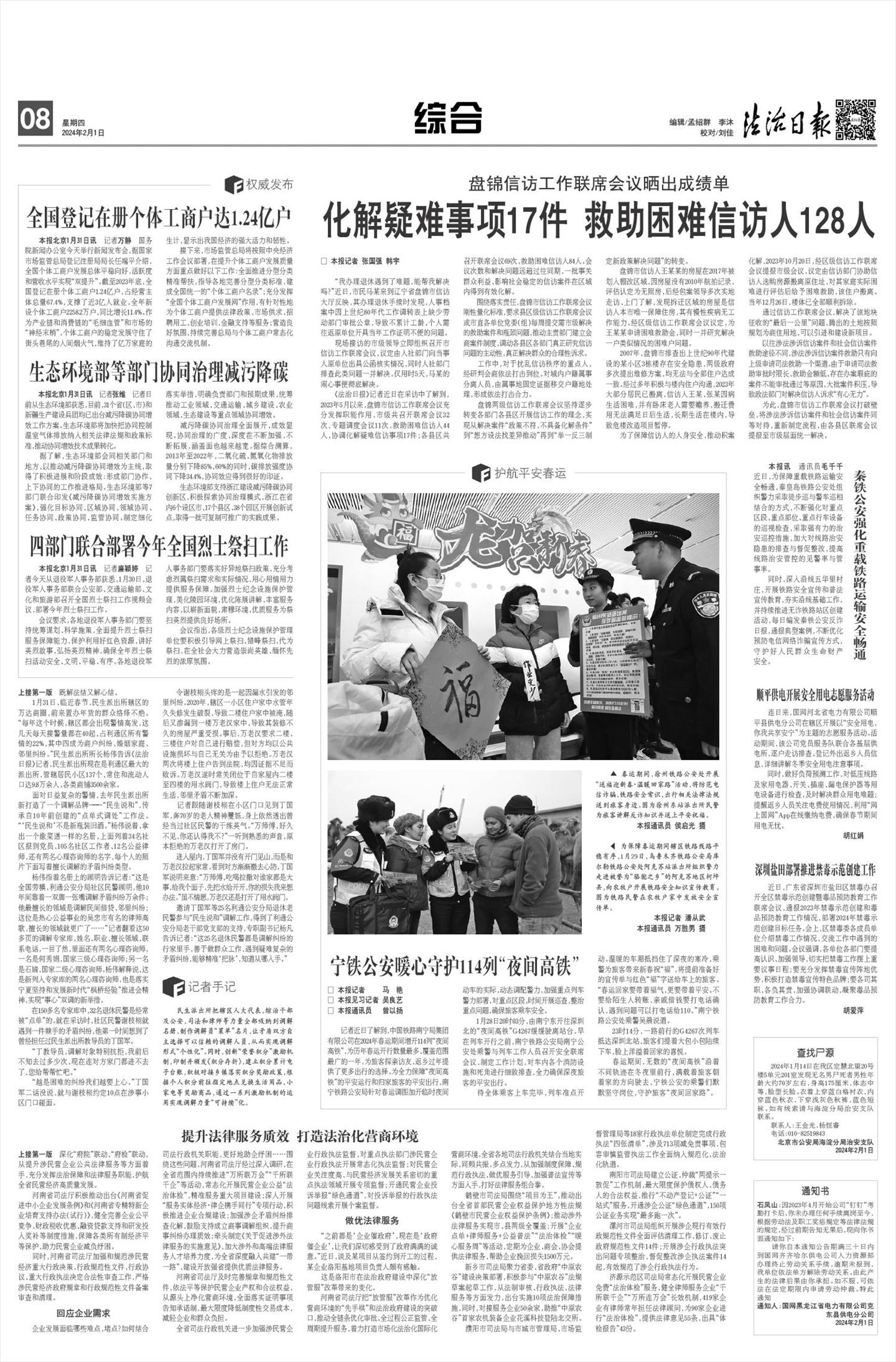 深化“府院”联动、“府检”联动,从提升涉民营企业公共法律服务等方面着手,充分发挥法治保障和法律服务职能,护航全省民营经济高质量发展。