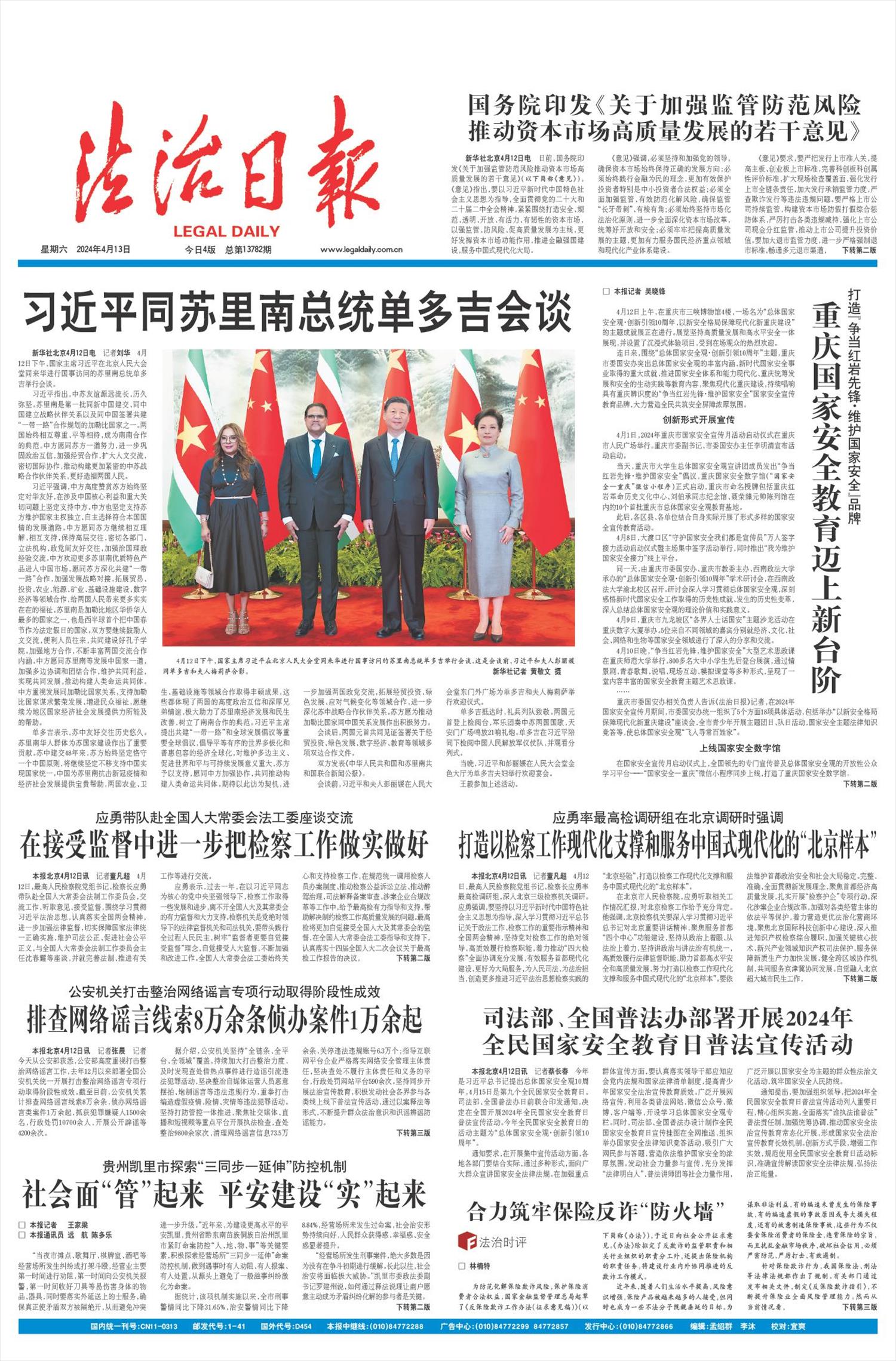不断提高履职办案质效。全国人大常委会法工委正牵头调研,推进相关法律(草案)的修改、制定工作,这对于检察机关强化法律监督,保障国家法律统一正确实施,维护执法司法公正等具有重要意义。最高检将积极配合、协助立法机关,在立法研究、参与立法等方面积极发挥作用,推动完善立法,切实担负起宪法法律赋予的法律监督职责,努力让人民群众在每一个司法案件中感受到公平正义。