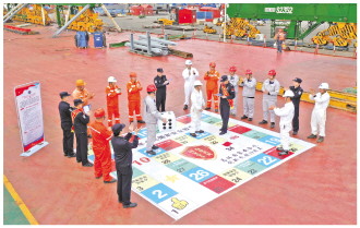 ▲ 近日,长江航运公安局南通分局联合南通出入境边防检查站开展“国家安全 你我同行”趣味知识竞赛活动。活动中,民警来到口岸码头,登上船舶,组织船员和码头工人通过“飞行棋”知识竞赛形式,共同学习国家安全知识。 本报记者 罗莎莎 本报通讯员 高彬 摄