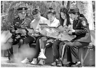 ▲ 近日,安徽省芜湖市公安局镜湖分局特巡防大队民警走进辖区景区,向游客进行反电诈防范宣传,揭露电信诈骗骗局,宣传防范知识,提醒大家守护好自己的“钱袋子”。图为民警向游客进行反电诈宣传。 本报通讯员 张红 摄