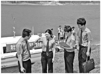 丹江口水库是南水北调中线工程核心水源区,横跨河南省淅川县和湖北省丹江口市。为有效打击跨区域破坏生态环境资源犯罪,保护水源地水质安全,淅川县人民检察院和丹江口市人民检察院共同建立了深化生态环境检察跨区域协作机制。图为两地检察干警近日在丹江口水库取水分析水质安全情况。 本报记者 赵红旗 本报通讯员 王永强 刘潮杰 摄