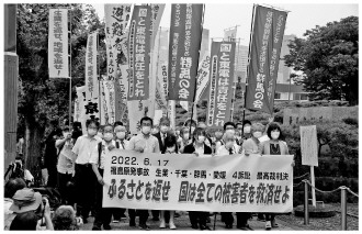 6月17日当天,近千人聚集在日本最高法院门前举行抗议活动,抗议民众手举横幅,高呼“作出对未来可以自豪的判决”,要求日本最高法院修正两年前作出的认定日本政府对福岛核事故不负有责任的判决结果。