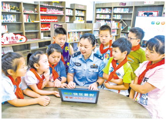 ▲ 江苏省南通市通州区公安局城西派出所民警近日走进金新街道狮子桥村开展“畅享快乐暑假、牢记网络安全”教育宣传活动,讲解网络安全知识,引导孩子们提高网络安全意识和自我保护能力。图为民警为孩子们讲解安全上网知识。 本报记者 罗莎莎 本报通讯员 翟慧勇 摄