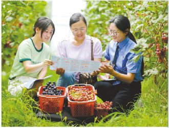 图① 7月17日,贵州省黔西市人民检察院检察官走进锦星镇葡萄园,向游客宣讲反诈、禁毒等法律知识。