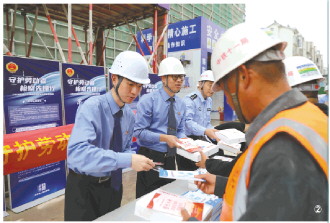 图② 4月28日,江苏省无锡市、锡山区两级检察院与锡山区司法局联合开展“守护劳动者 检察先锋行”志愿服务活动,走进鹅湖镇某工地,为工人提供法律咨询服务。 张堃 贺俊丽 摄