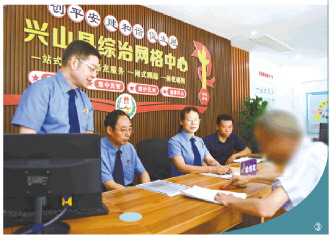 图③ 7月24日,湖北省宜昌市、兴山县两级检察院联合驻兴山县综治网格中心检察工作室共同接访,相关工作人员现场办理一起信访积案。