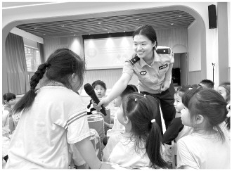 近日,浙江省宁波市公安局鄞州分局福明派出所与辖区乐禾幼儿园共同举办主题为“防拐防骗,为爱护航”的安全演练活动。民警用生动有趣的故事和朗朗上口的儿歌,将防拐骗安全意识植入孩子们心间。图为活动现场。 本报记者 王春 本报通讯员 史锴 摄