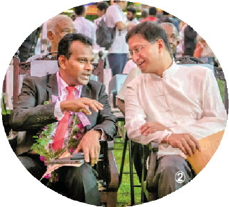 图② 图为12月4日,中国驻斯里兰卡大使戚振宏(右)与斯里兰卡旅游部副部长鲁万·拉纳辛哈在“中国美食嘉年华”活动期间交谈。