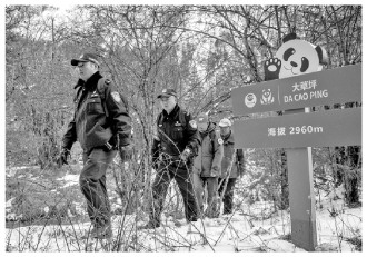 11月28日,雪后的王朗国家级自然保护区银装素裹。四川省平武县公安局白马派出所民警联合护林员在平均海拔3200余米的大熊猫国家公园内巡逻,守护保护区安全。 本报通讯员 唐超 摄
