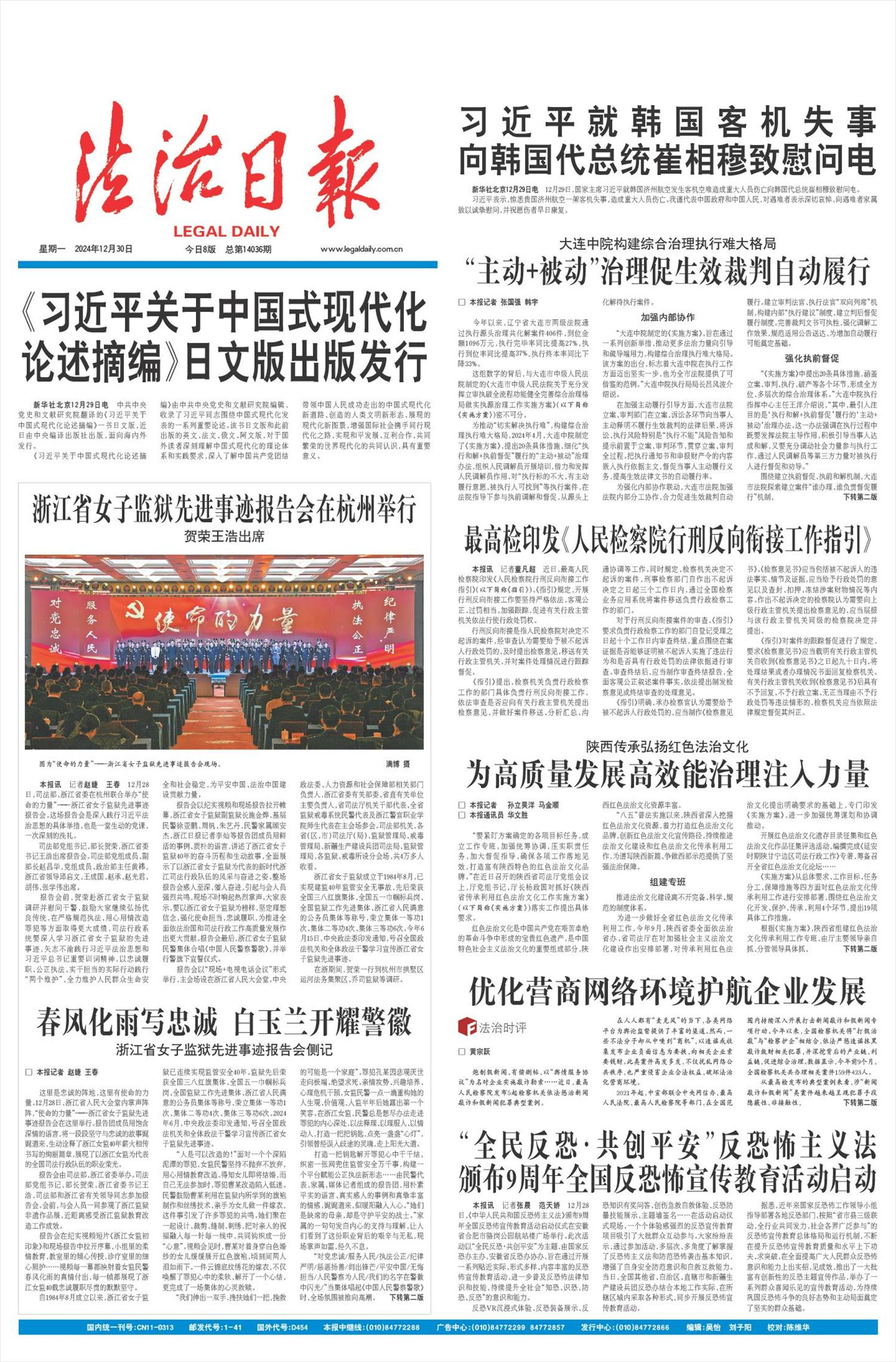 浙江省女子监狱先进事迹报告会在杭州举行 贺荣王浩出席   本报讯 记者赵婕 王春 12月28日,司法部、浙江省委在杭州联合举办“使命的力量”——浙江省女子监狱先进事迹报告会。这场报告会是深入践行习近平法治思想的具体举措,也是一堂生动的党课、一次深刻的洗礼。