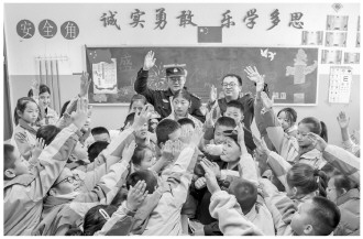近日,乌鲁木齐铁路公安局哈密公安处哈密东站派出所联合哈密铁路工务段,在辖区学校开展法治宣传教育活动。图为民警以法律知识有奖问答的形式与学生们进行互动。 本报记者 潘从武 本报通讯员 谢仁古力·托呼提 摄