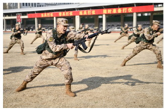 新年开训。图为1月2日,武警安徽总队合肥支队组织官兵进行刺杀训练。