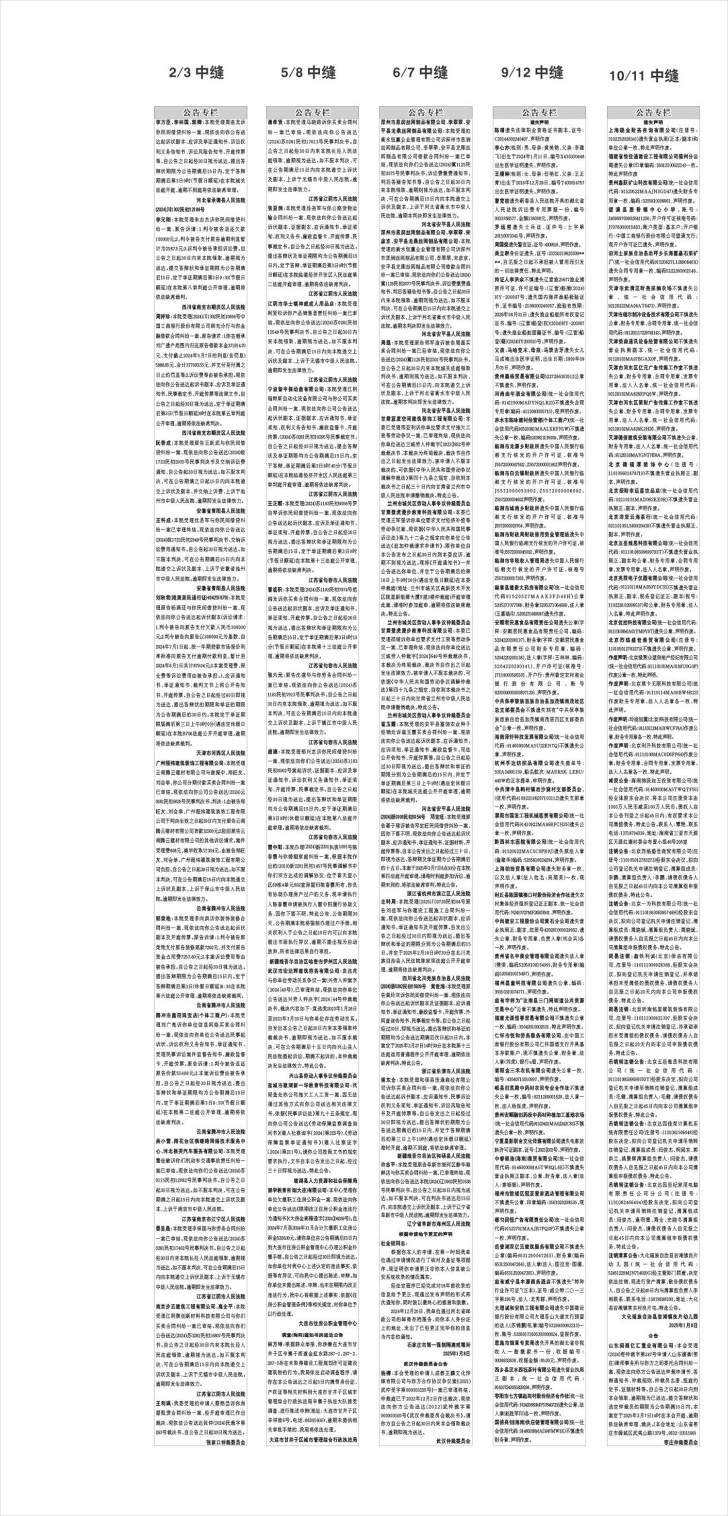 公告专栏   10/11中缝
