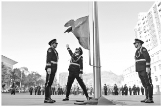 1月10日,江西省武宁县公安局举行升警旗仪式,以昂扬向上的精神风貌和拼搏创新的工作状态向警察节献礼。图为升旗仪式现场。 本报记者 黄辉 本报通讯员 熊遥 摄