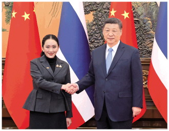 新华社北京2月6日电 记者董雪 邵艺博 2月6日上午,国家主席习近平在北京人民大会堂会见来华进行正式访问的泰国总理佩通坦。