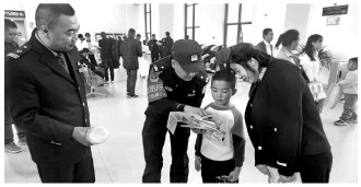 近日,西安铁路公安局延安公安处绥德站派出所联合陕西省榆林市绥德县应急管理局、中国铁路西安局集团有限公司绥德工电段等单位在绥德县火车站联合开展春节消防安全宣传活动,确保节日期间消防安全。图为民警和车站工作人员向旅客介绍铁路出行禁止携带物品与烟花爆竹安全使用注意事项。 本报通讯员 兰歌 摄