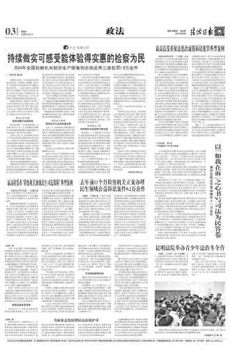 “我们将入驻综治中心作为检察机关坚持和发展新时代‘枫桥经验’的重要载体,主动参与健全社会治理体系,丰富法律监督方式和手段,织密矛盾纠纷依法化解职责网,促进源头预防、前端化解,在践行检察为民中厚植党的执政根基。”湖北省人民检察院党组副书记、常务副检察长金鑫说。