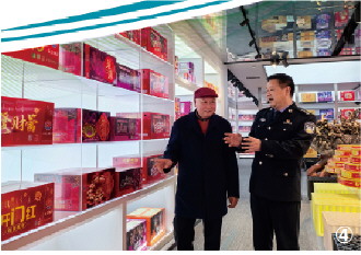 图④ 2025年2月17日,全国人大代表、湖南省长沙市公安局治安支队危险爆炸物品管理大队警务技术三级主任刘义新(右)深入浏阳市烟花企业走访调研。 邵磊 摄
