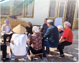 图⑤ 2024年4月10日,全国人大代表、宁夏回族自治区吴忠市红寺堡区新民街道人民调解委员会专职人民调解员马慧娟(左一)在红寺堡区红寺堡镇玉池村向当地群众宣传法律知识。 资料图片