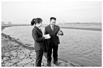 图为河南省尉氏县人民检察院检察官从贾鲁河河水中取样。